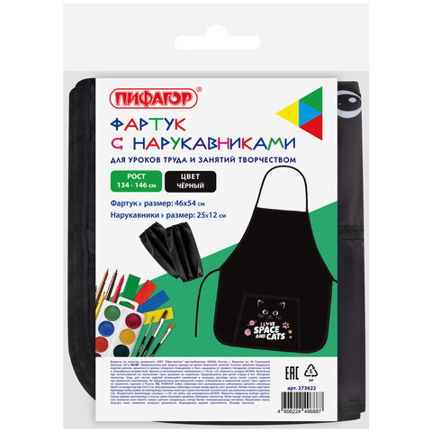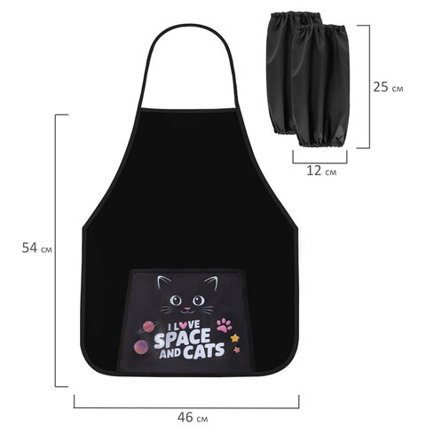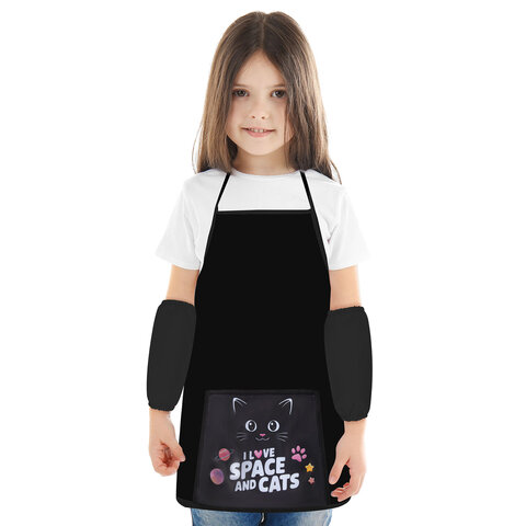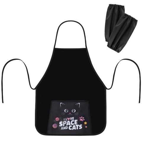 Фартук с нарукавниками для уроков труда ПИФАГОР, 1 карман, 46х54 см, "Dark kitten", 273622, 5шт.#S