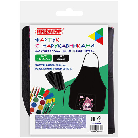 Фартук с нарукавниками для уроков труда ПИФАГОР, 1 карман, 46х54 см, "Anime girl", 273624, 5шт.#S