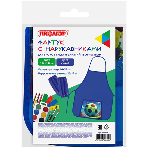 Фартук с нарукавниками для уроков труда ПИФАГОР, 1 карман, 46х54 см, "Football match", 273628, 5шт.#S