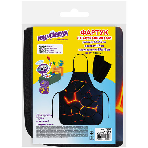 Фартук с нарукавниками для уроков труда ЮНЛАНДИЯ, регулировка по росту, 46х54 см, "Volcano split", 273632, 4шт.#S