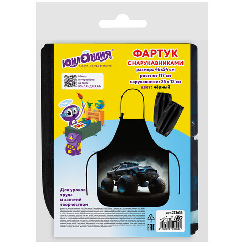 Фартук с нарукавниками для уроков труда ЮНЛАНДИЯ, регулировка по росту, 46х54 см, "Space driver", 273634, 4шт.#S