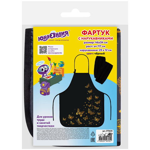 Фартук с нарукавниками для уроков труда ЮНЛАНДИЯ, регулировка по росту, 46х54 см, "Golden", 273635, 4шт.#S