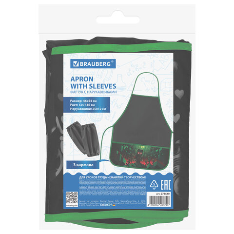 Фартук с нарукавниками для уроков труда BRAUBERG, 3 кармана, 46x54 см, "Night warrior", 273640, 4шт.#S