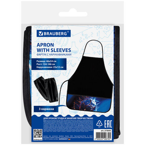 Фартук с нарукавниками для уроков труда BRAUBERG, 3 кармана, 46x54 см, "Score goal", 273645, 4шт.#S