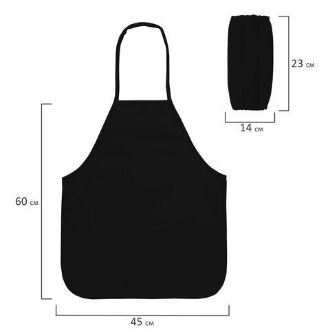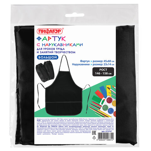 Фартук с нарукавниками для уроков труда ПИФАГОР, 3 кармана, увеличенный размер, 45x60 см, черный, 273747, 4шт.#S