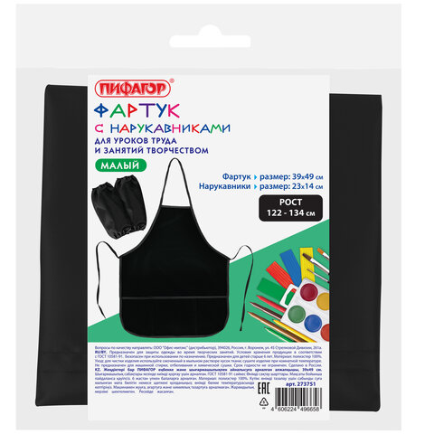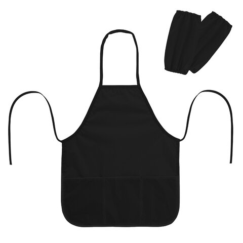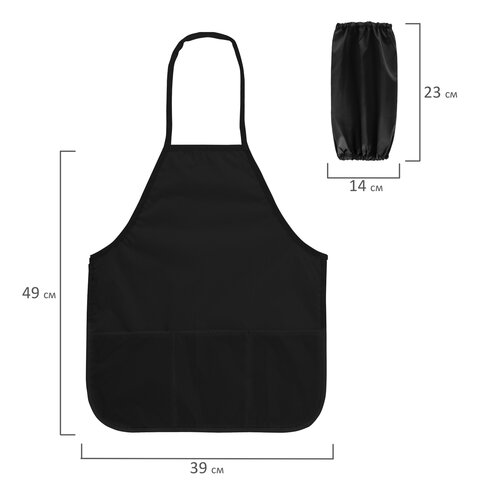 Фартук с нарукавниками для уроков труда ПИФАГОР, 3 кармана, уменьшенный размер, 39х49 см, черный, 273751, 5шт.#S