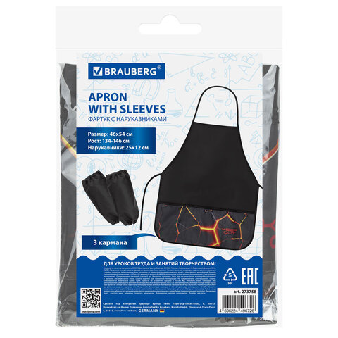 Фартук с нарукавниками для уроков труда BRAUBERG, 3 кармана, 46x54 см, "Keep out", 273758, 4шт.#S