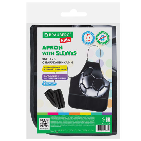 Фартук с нарукавниками для уроков труда BRAUBERG KIDS, 2 кармана, регулировка по росту, 46x54 см, "Score ball", 273759, 4шт.#S