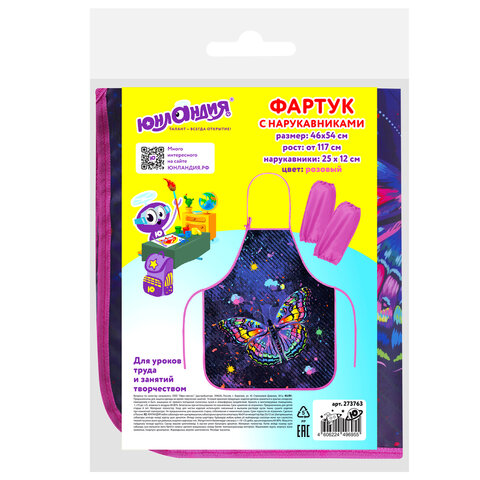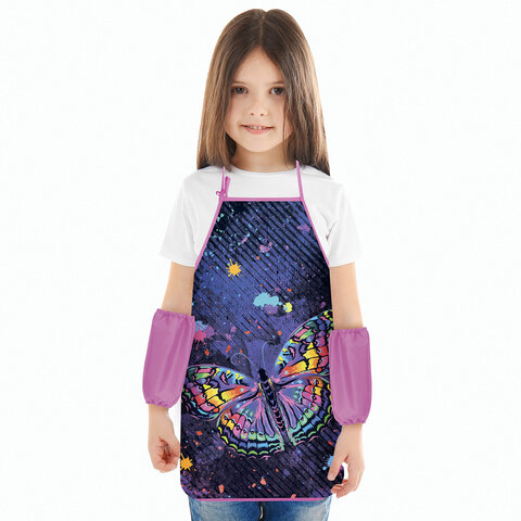 Фартук с нарукавниками для уроков труда ЮНЛАНДИЯ, регулировка по росту, 46х54 см, "Colorful butterfly", 273763, 4шт.#S