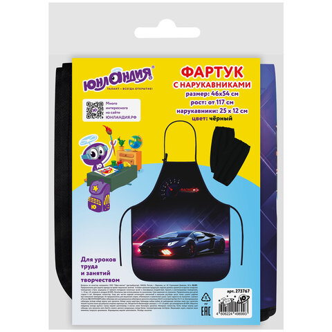 Фартук с нарукавниками для уроков труда ЮНЛАНДИЯ, регулировка по росту, 46х54 см, "Street power", 273767, 4шт.#S