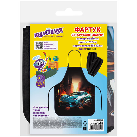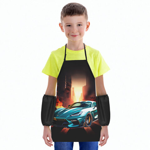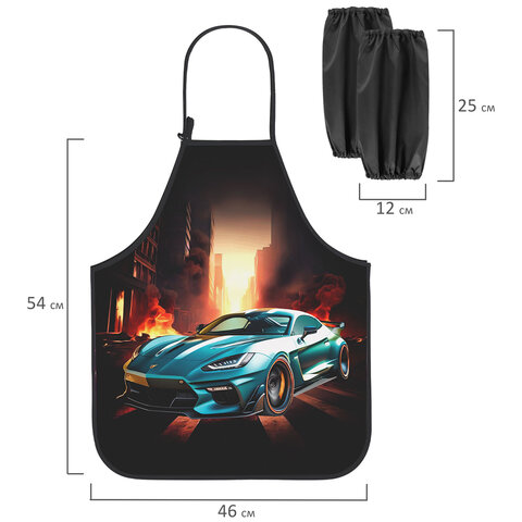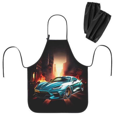 Фартук с нарукавниками для уроков труда ЮНЛАНДИЯ, регулировка по росту, 46х54 см, "Fire car", 273768, 4шт.#S