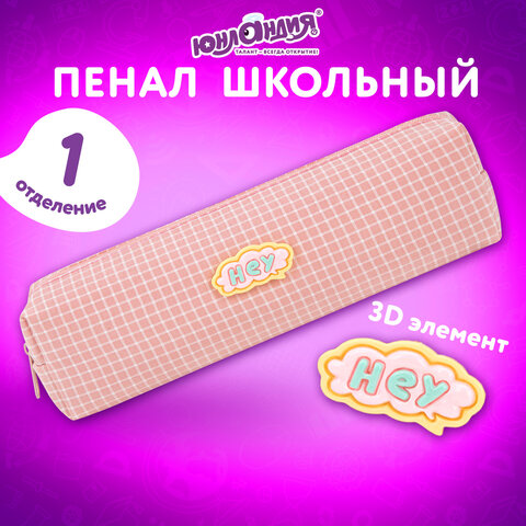 Пенал ЮНЛАНДИЯ ЮНИОР, 1 отделение, полиэстер, аппликация, "Hey", 20х6х4 см, 273801, 6шт.#S