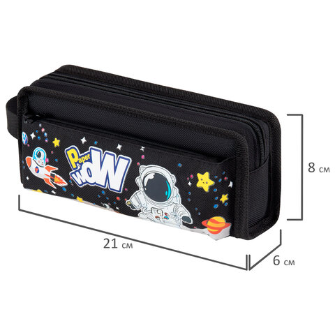 Пенал ЮНЛАНДИЯ ЮНИОР, 2 отделения, с ручкой, полиэстер, "Astronaut", 21х8х6 см, 273816, 4шт.#S