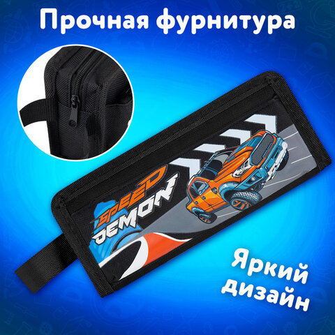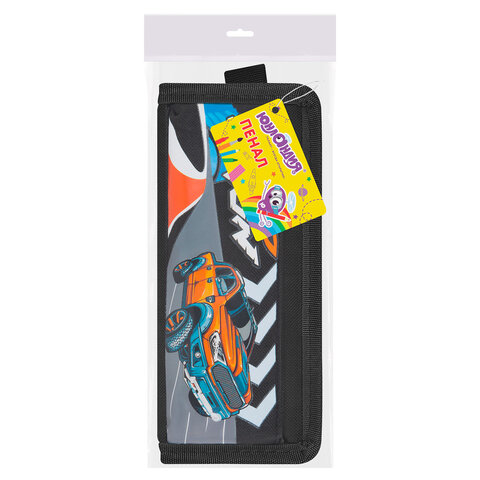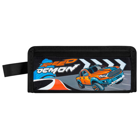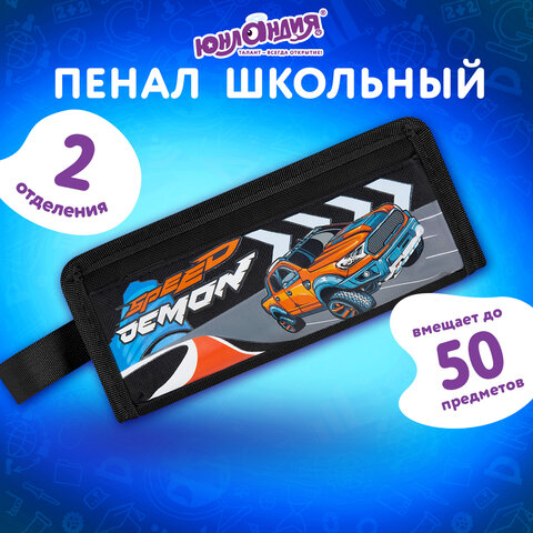 Пенал ЮНЛАНДИЯ ЮНИОР, 2 отделения, с ручкой, полиэстер, "Speed demon", 21х8х6 см, 273817, 4шт.#S