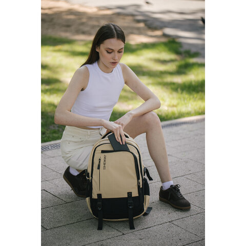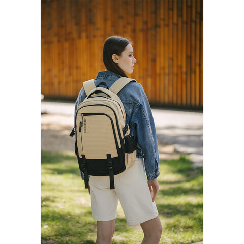Рюкзак HEIKKI VALUABLE (ХЕЙКИ) универсальный, 2 отделения, отделение для ноутбука, бежевый, 48x33x19 см, 273870#S