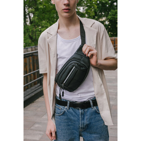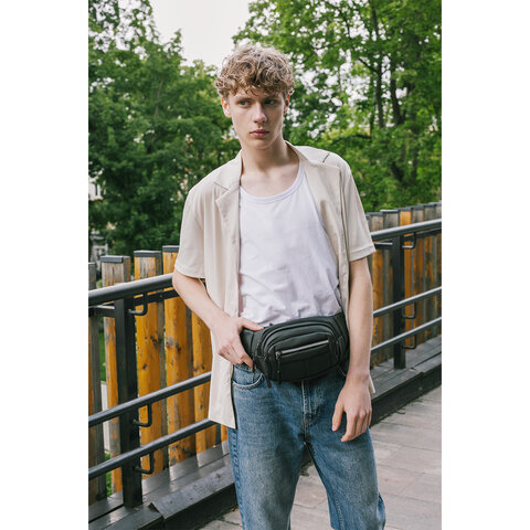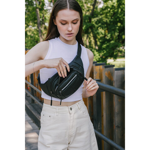 Сумка на пояс HEIKKI PROMPT (ХЕЙКИ), 2 отделения, регулируемый ремень, светоотражающие элементы, черная, 35х14х4см, 273922, 3шт.#S