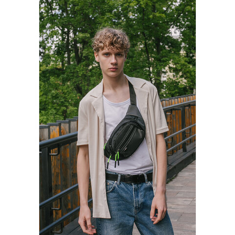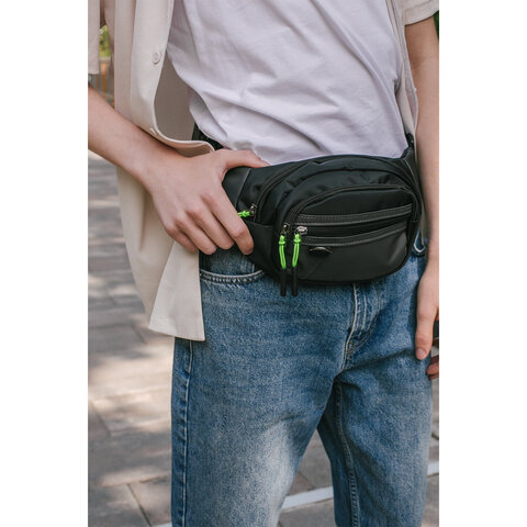 Сумка на пояс HEIKKI PROMPT (ХЕЙКИ), 2 отделения, регулируемый ремень, карман-антивор, черная, 37х14х5 см, 273928, 3шт.#S