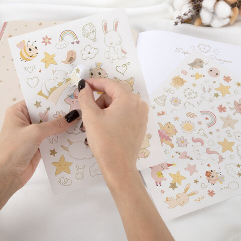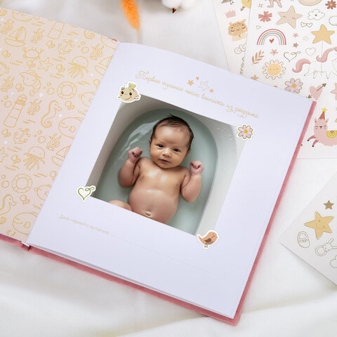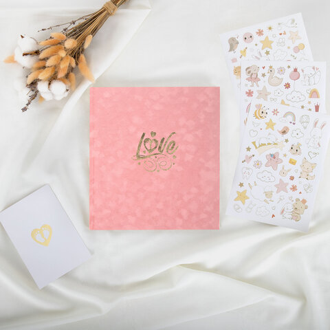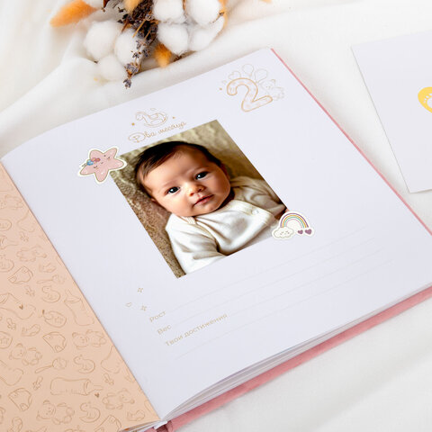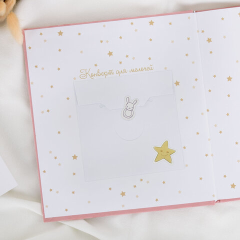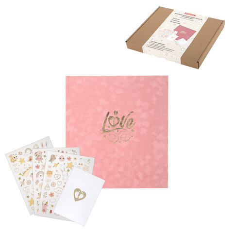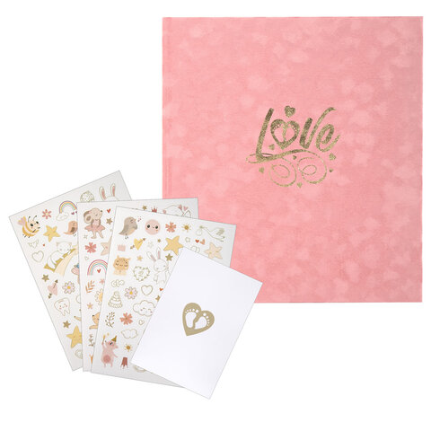 Фотоальбом-анкета детский 23х25 см, 32 листа, стикеры, открытка, конверт, розовый бархат, BRAUBERG, 391419#S