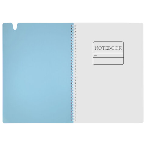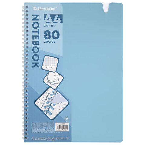 Тетрадь обложка пластик, А4 80 л., гребень мягкий, вырубка для ручки, клетка, BRAUBERG, голубой, 405370, 4шт.#S
