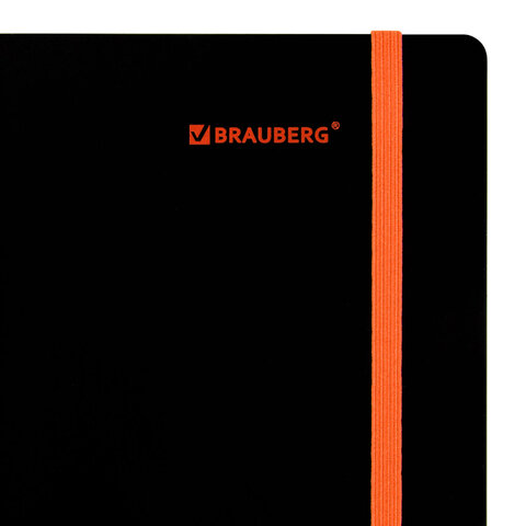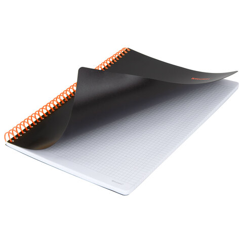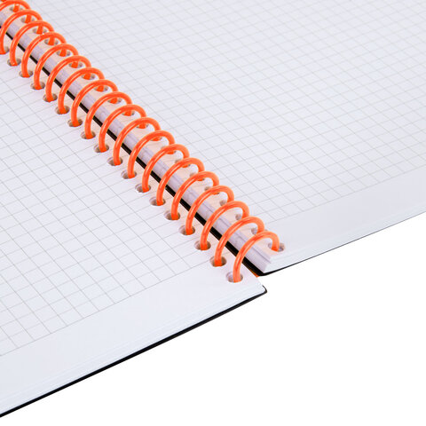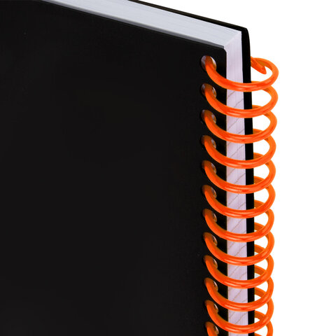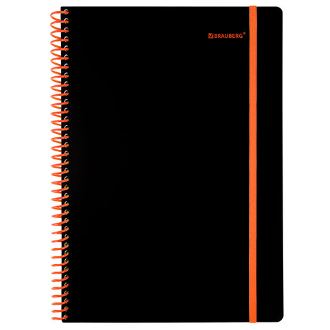 Тетрадь обложка пластик, А4 80 л., спираль пластик, резинка, клетка, BRAUBERG, черный/оранжевый, 405382, 5шт.#S