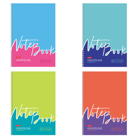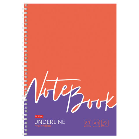 Тетрадь А4 80 л., HATBER, гребень, клетка, обложка картон, жесткая подложка, "Underline" (микс), 077006, 80Т4В1гр, 8шт.#S