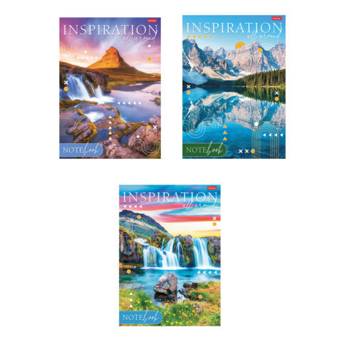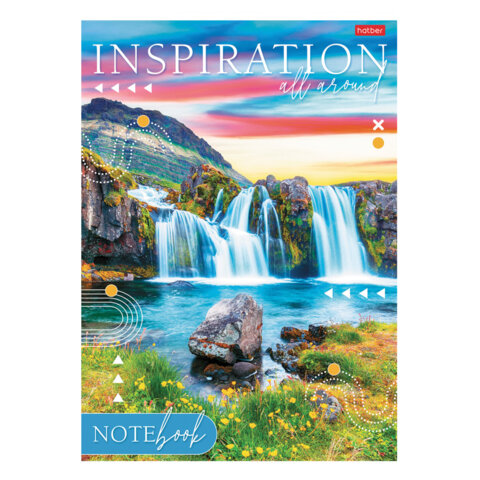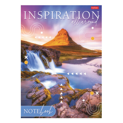 Тетрадь А4 80 л., HATBER, скоба, линия, глянцевая ламинация, тиснение, "Вдохновение вокруг" (микс), 083173, 80Т4лтВ2, 9шт.#S