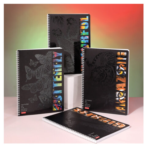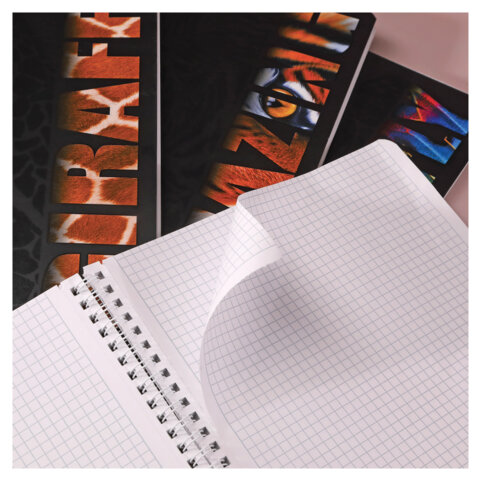 Тетрадь А4 96 л., HATBER, гребень, клетка, матовая ламинация, 3D-лак, "Animals print" (микс), 085842, 96Т4лолВ1гр, 8шт.#S