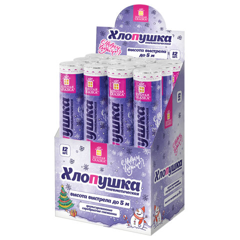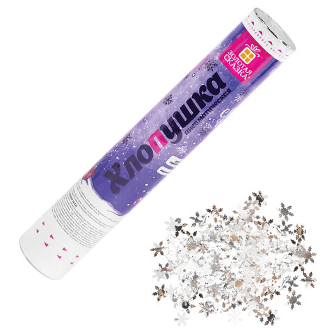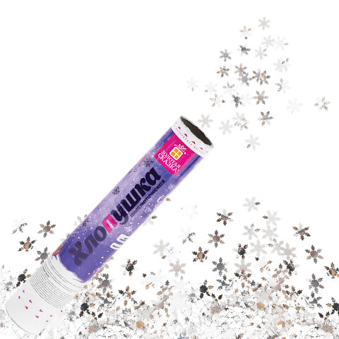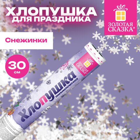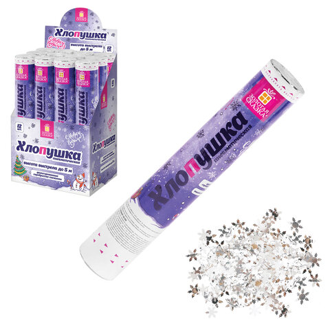 Хлопушка пневматическая 30 см "Снежинки", фольга, серебро, ЗОЛОТАЯ СКАЗКА, 592460, 12шт.#S
