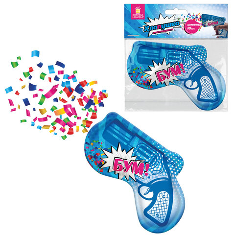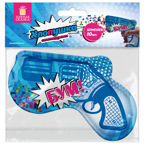 Хлопушка самонадувная КОМПЛЕКТ 10 штук "Пистолет с конфетти", фольга, бумага, ЗОЛОТАЯ СКАЗКА, 592462, 3шт.#S