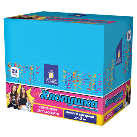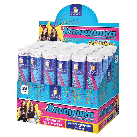 Хлопушка пневматическая 20 см "Party Popper", фольга, серпантин, ассорти, ЗОЛОТАЯ СКАЗКА, 592464, 24шт.#S