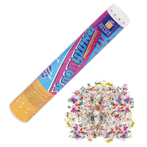 Пневматическая хлопушка не является пиротехникой и работает на основе энергии сжатого воздуха. Конфетти и серпантин ярких цветов можно использовать в помещении или на улице. Хлопушка подойдет для праздников, концертов, реквизита для фотосессии.