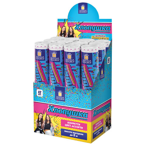 Хлопушка пневматическая 30 см "Party Mix", фольга, конфетти, ассорти, ЗОЛОТАЯ СКАЗКА, 592465, 12шт.#S