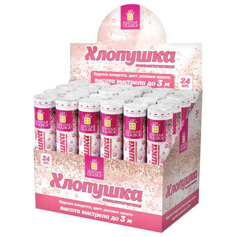 Хлопушка пневматическая 20 см "ВОЛШЕБСТВО" фольга, круги, розовое золото, ЗОЛОТАЯ СКАЗКА, 592468, 24шт.#S