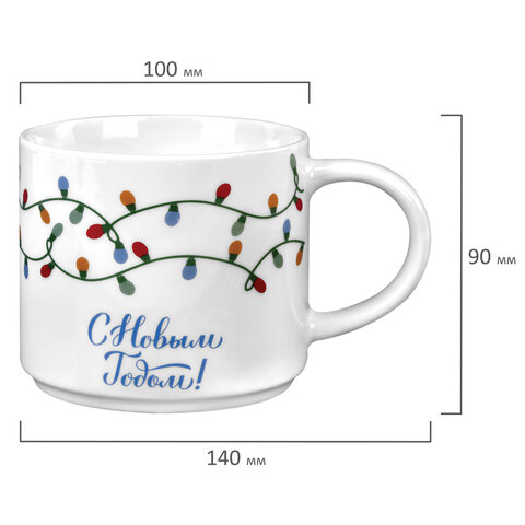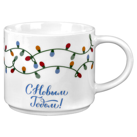 Кружка новогодняя 420 мл, "Гирлянда", 10х9 см, каменная керамика, ЗОЛОТАЯ СКАЗКА, 592546, 4шт.#S