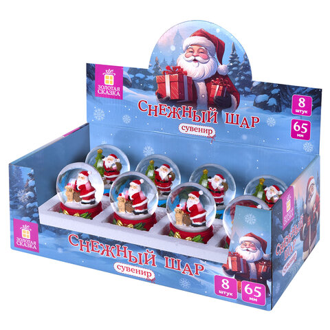 Снежный шар "Дед Мороз" диаметр 65 мм, полистоун/стекло, 2 дизайна ассорти, ЗОЛОТАЯ СКАЗКА, 592598, 8шт.#S
