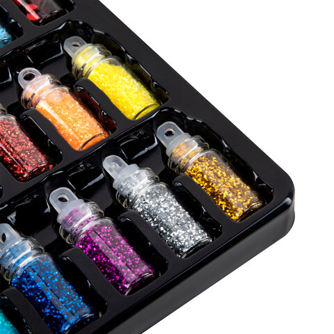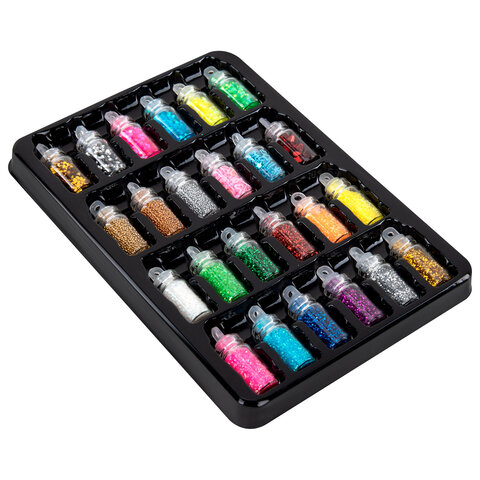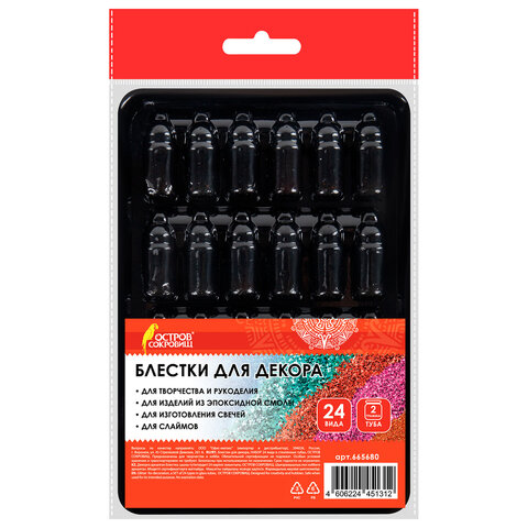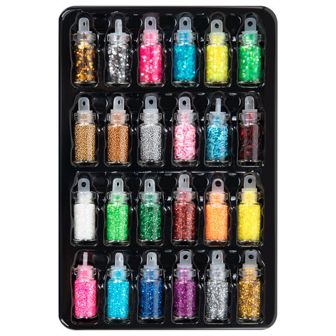 Блестки для декора НАБОР 24 вида по 2 грамма, в стеклянных тубах, ОСТРОВ СОКРОВИЩ, 665680, 5шт.#S