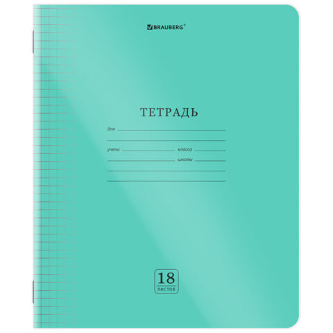 Тетрадь пластиковая обложка (прозрачная) 18 листов, клетка, BRAUBERG "Smart Cover", ЗЕЛЕНАЯ, 405028, 50шт.#S
