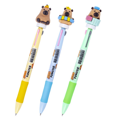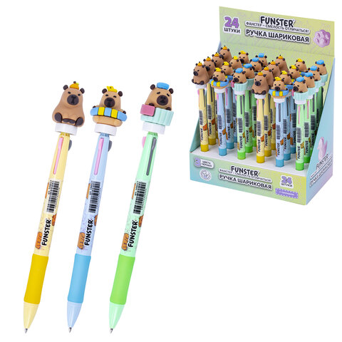 Ручка-спиннер многоцветная с топпером FUNSTER "COOL CAPY", 3 ЦВЕТА, ассорти, пишущий узел 0,7 мм, линия письма 0,35 мм, 144517, 24шт.#S
