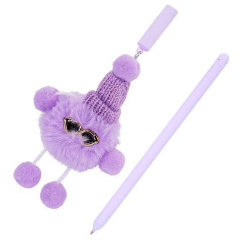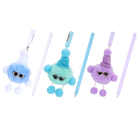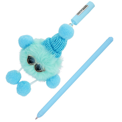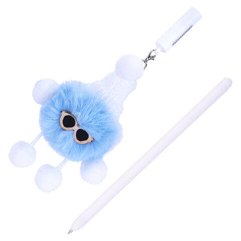 Ручка с пушистой подвеской шариковая FUNSTER "FLUFFY HAT", СИНЯЯ, пишущий узел 0,7 мм, 144524, 24шт.#S