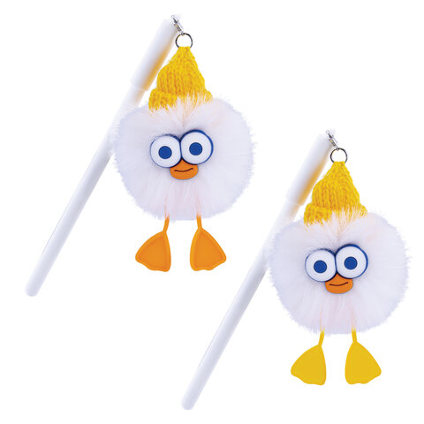 Ручка с пушистой подвеской шариковая FUNSTER "FLUFFY DUCK", СИНЯЯ, ассорти, пишущий узел 0,7 мм, 144525, 24шт.#S