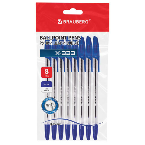 Ручки шариковые BRAUBERG "X-333", НАБОР 8 ШТУК, СИНИЕ, узел 0,7 мм, линия письма 0,35 мм, 144527, 10шт.#S