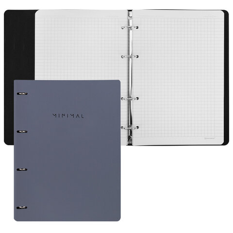 Тетрадь на кольцах БОЛЬШАЯ А4, 240х310 мм, 120 л., под кожу, BRAUBERG VISTA, "Minimal", серый, 405202, 2шт.#S