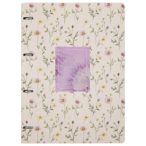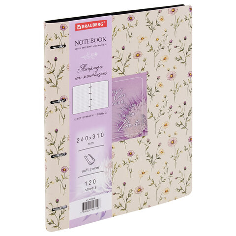 Тетрадь на кольцах БОЛЬШАЯ А4, 240х310 мм, 120 л., под кожу, BRAUBERG VISTA, "Пастельные цветы", 405204, 2шт.#S