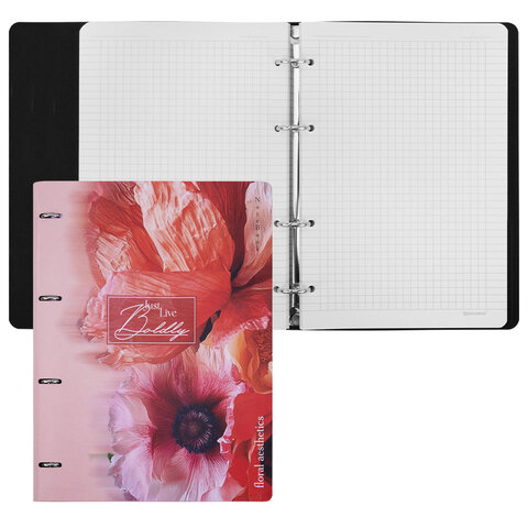 Тетрадь на кольцах БОЛЬШАЯ А4, 240х310 мм, 120 л., под кожу, BRAUBERG VISTA, "Bloom", 405205, 2шт.#S