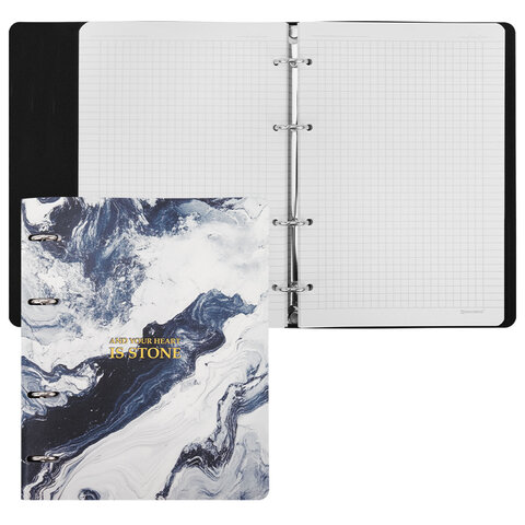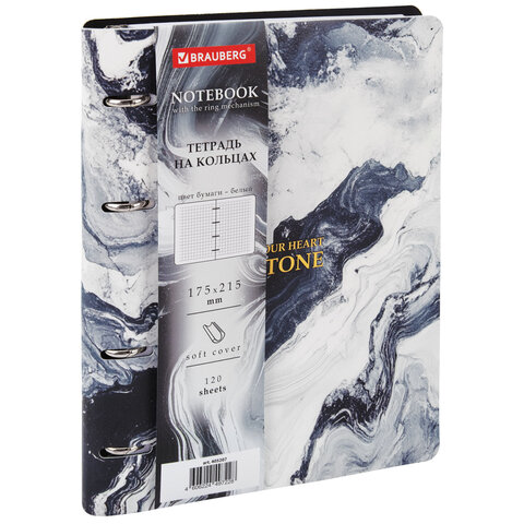 Тетрадь на кольцах А5, 175х215 мм, 120 л., под кожу, BRAUBERG VISTA, "Мрамор", 405207, 3шт.#S
