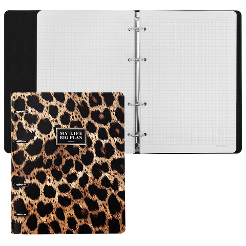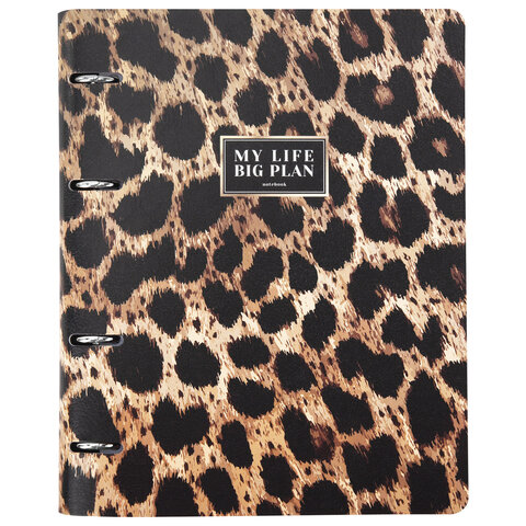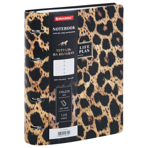 Тетрадь на кольцах А5, 175х215 мм, 120 л., под кожу, BRAUBERG VISTA, "Леопард", 405209, 3шт.#S
