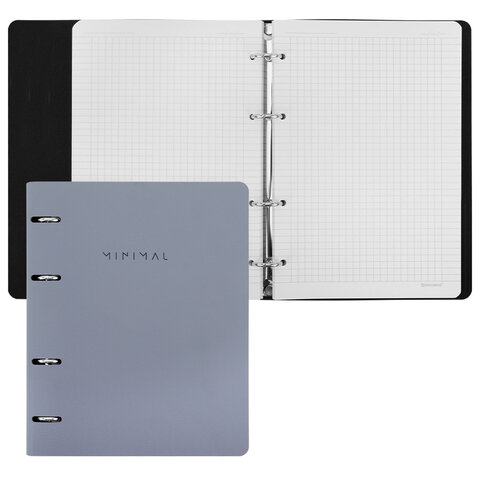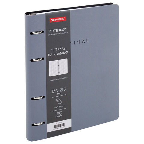 Тетрадь на кольцах А5, 175х215 мм, 120 л., под кожу, BRAUBERG VISTA, "Minimal", серый, 405216, 3шт.#S