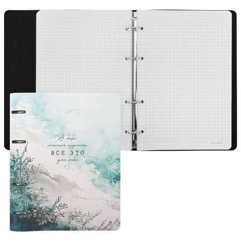 Тетрадь на кольцах А5, 175х215 мм, 120 л., под кожу, BRAUBERG VISTA, "Акварель", 405217, 3шт.#S