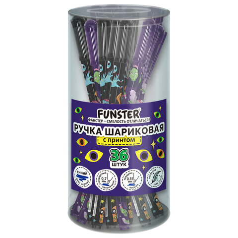 Ручка шариковая с принтом FUNSTER STICK "MONSTERS", СИНЯЯ, SOFT TOUCH покрытие, узел 0,7 мм, линия 0,35 мм, 144390, 36шт.#S