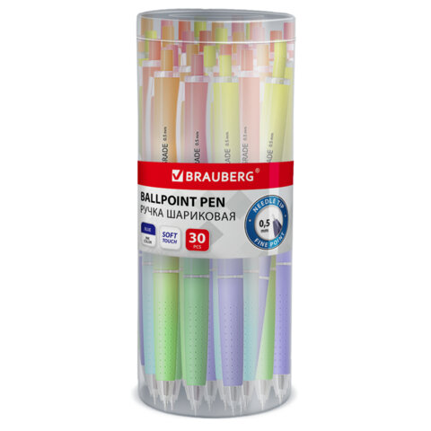 Ручка шариковая автоматическая BRAUBERG "OIL-BASE GRADE", СИНЯЯ, корпус ассорти, пишущий узел 0,5 мм, линия письма 0,3 мм, 144501, 30шт.#S